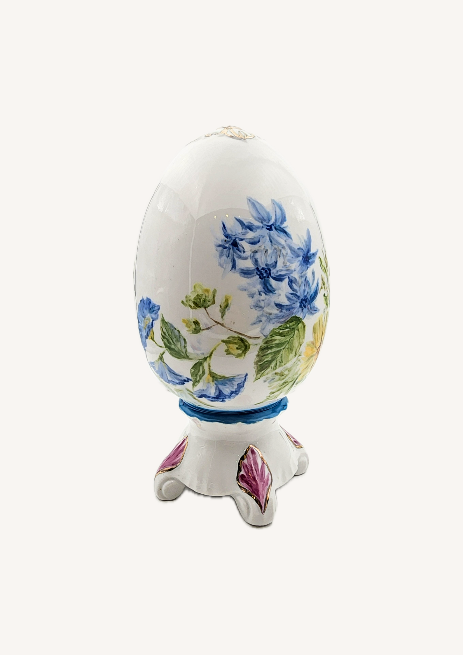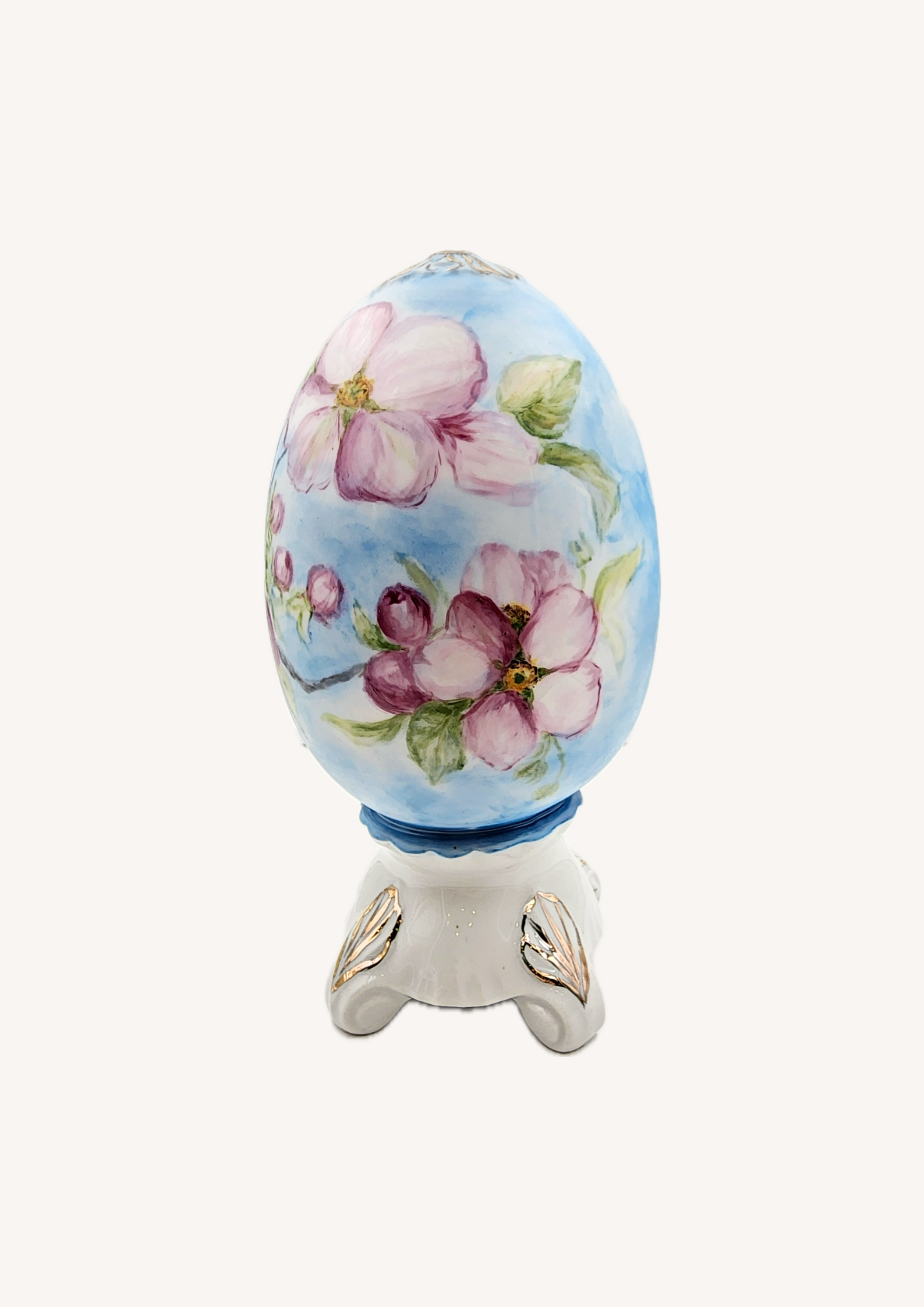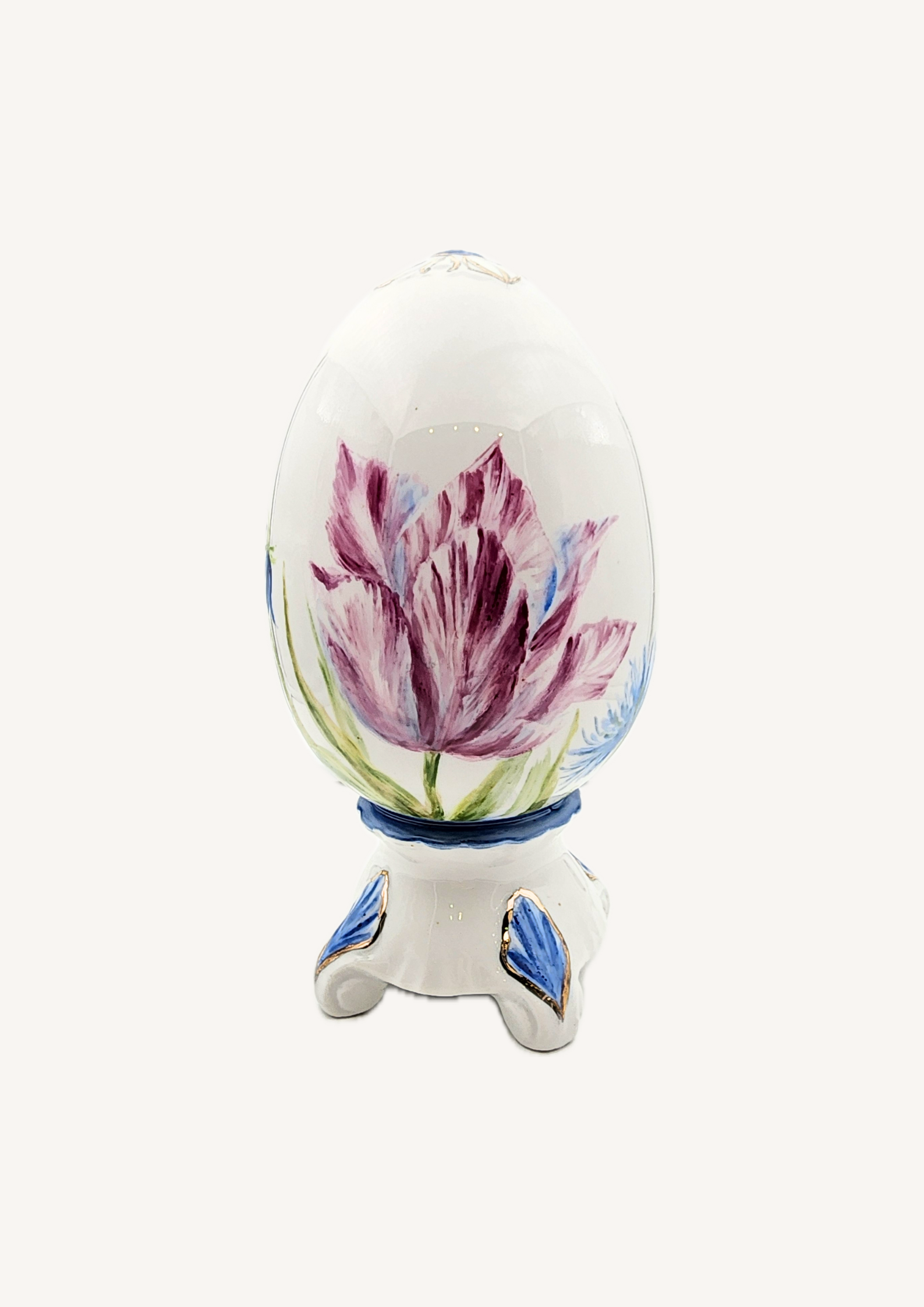 Пасхальная коллекция вдохновлена весной и её нежными цветами, которые наполняют дом праздничной атмосферой и уютом. Яйца украшены изысканной ручной росписью тюльпанов, полевых колокольчиков, вьюнков, одуванчиков, ирисов и ромашек, с тонким золочением для особого блеска. Эти уникальные изделия идеально дополнят сервировку праздничного стола или станут стильным акцентом в интерьере.