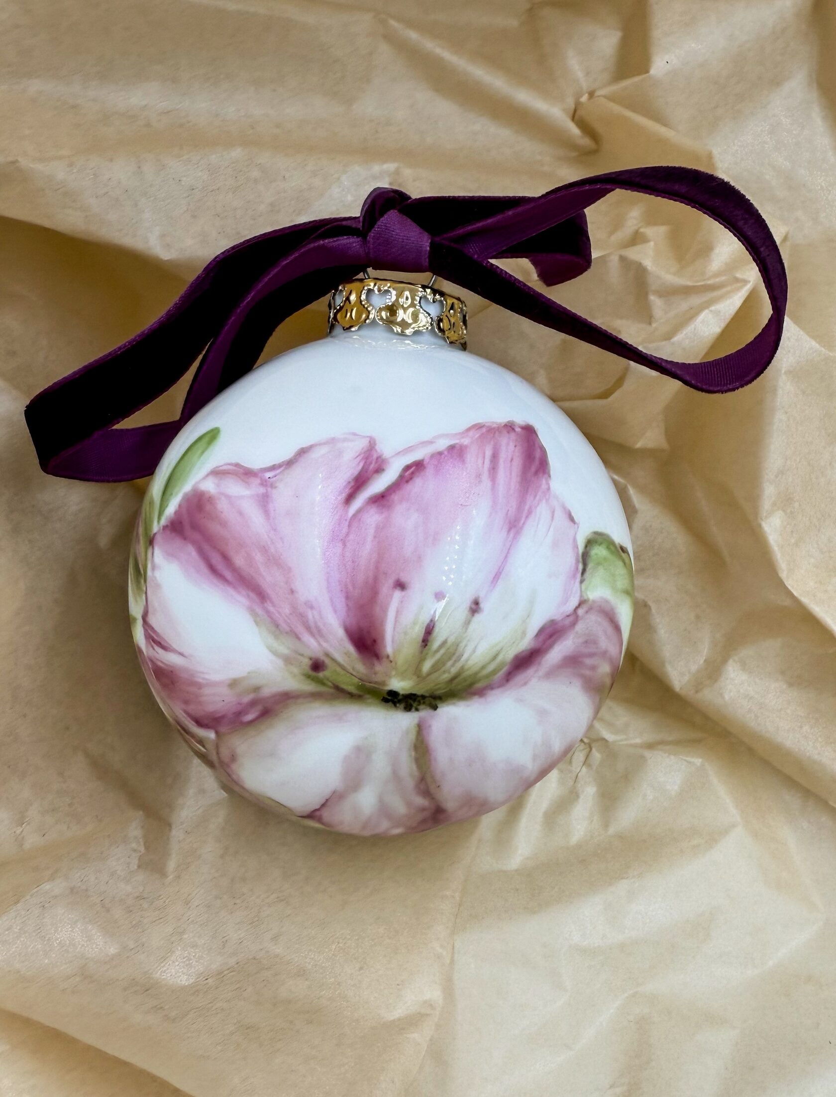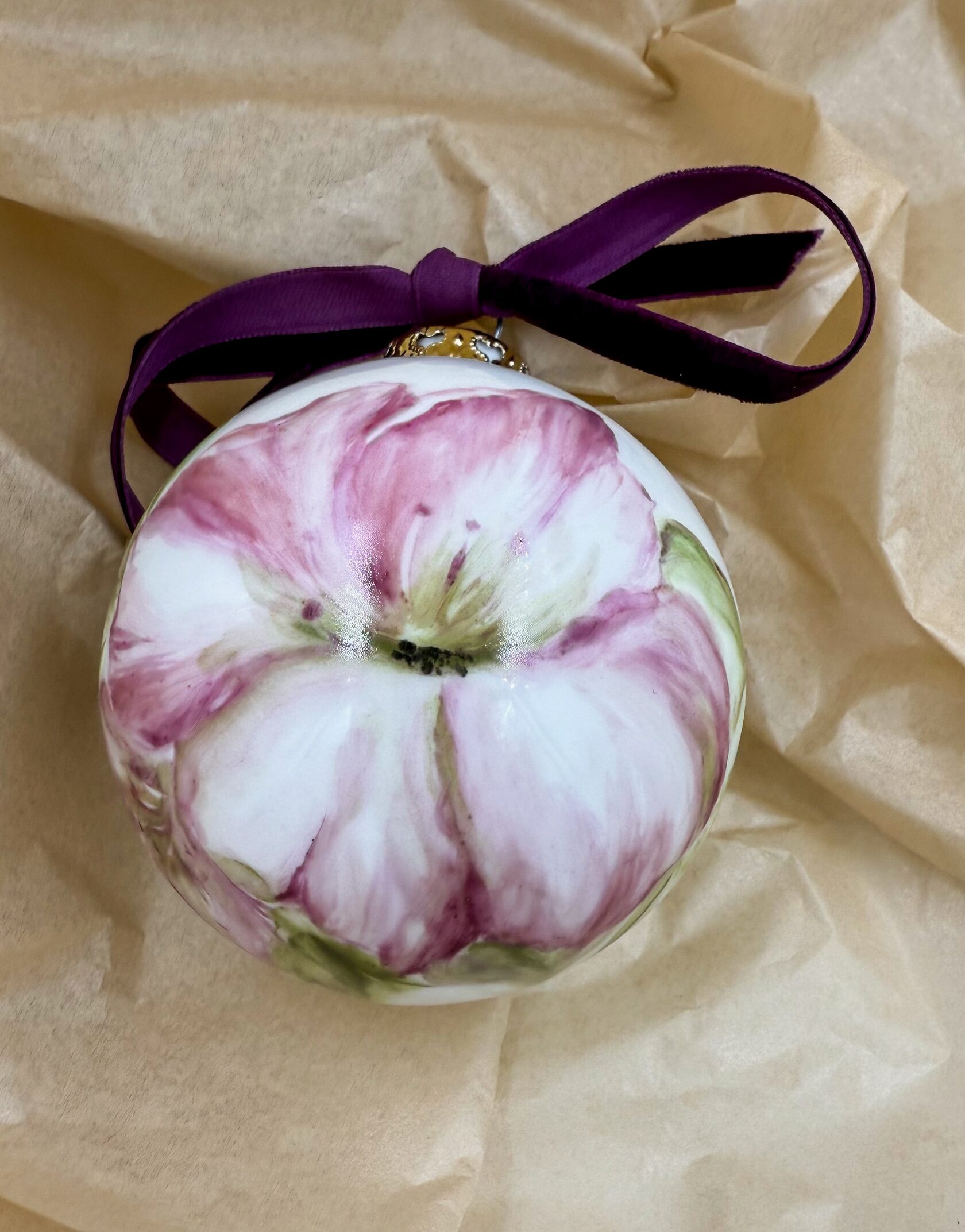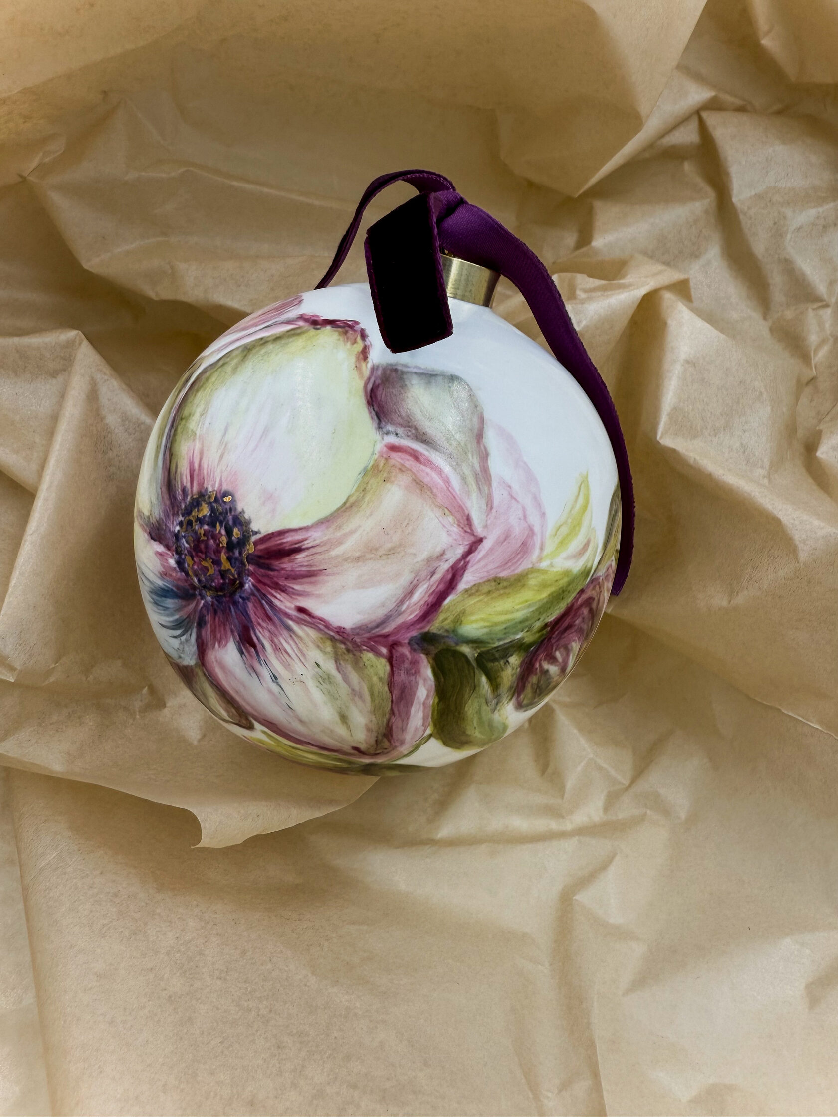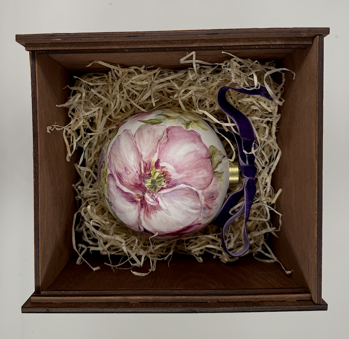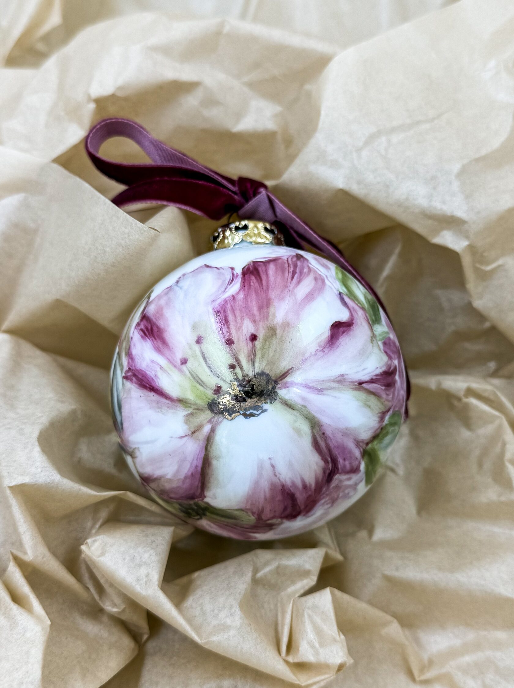 Каждый шар украшен авторской росписью с золочением. Такой шар может быть не только украшением новогодней елки, но и праздничных интерьерных композиций, создавая атмосферу эстетики и праздничного настроения. Шары отлиты на фарфоровых мануфактурах Франции и Германии.